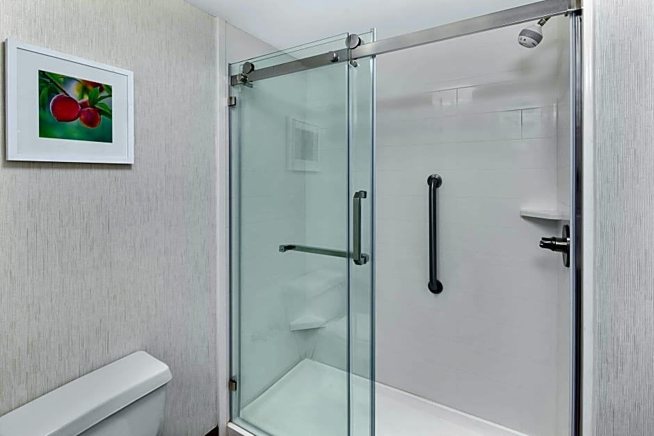 Features a 32-inch flat-screen TV, a microwave and a small refrigerator.